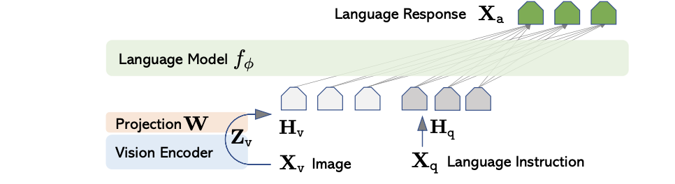 This document introduces a potent method for processing multimodal inputs. LLaVA (Large Language and Vision Assistant) [1] [2] demonstrated connecting pre-trained vision encoder with large language model through a MLP projection layer can achieve impressive multimodal understanding capabilities. Details are illustrated in the diagram below: